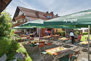 Ein Biergarten mit Platz für ca. 80 Gäste kann von der Gemeinde Bad Bayersoien dazu gepachtet werden.