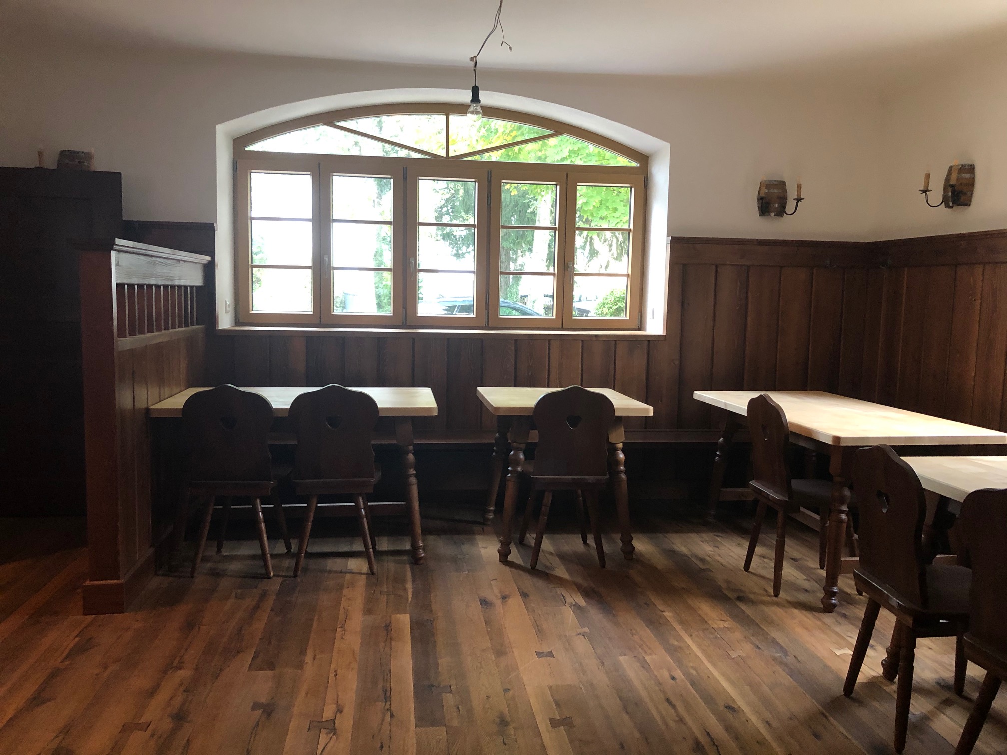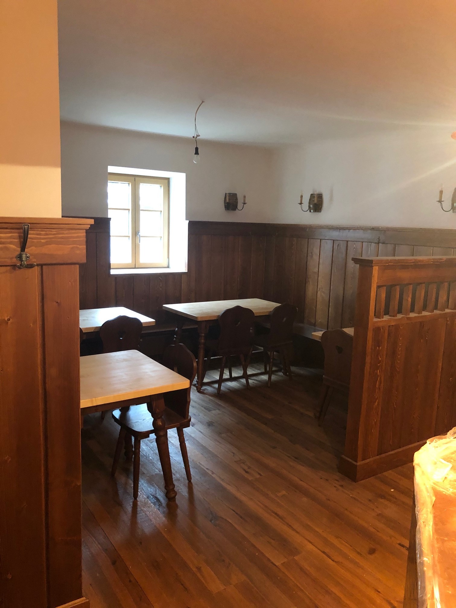 Der Frühstückraum wurde 2020 komplett mit neuem Boden von einer Schreinerei neu gestaltet.