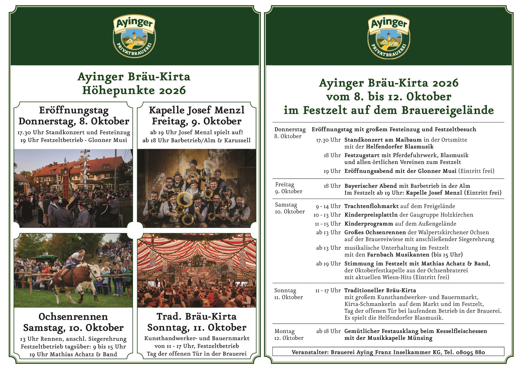 Ayinger Bräu-Kirta 2026 vom 8. bis 12. Oktober